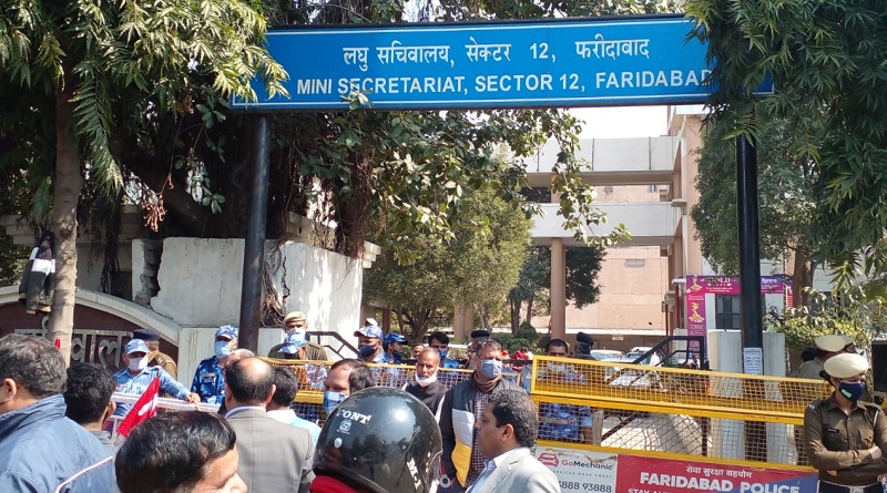 हरियाणा में मज़दूरों के एक प्रदर्शन को कवर करने गए मज़दूर पत्रकार नरेश कुमार की पुलिस के सामने पिटाई, गिरफ़्तारी और मुकदमा दर्ज किए जाने के ख़िलाफ यूनियन कार्यकर्ताओं ने फरीदाबाद डीसी ऑफिस के सामने सोमवार को धरना प्रदर्शन कर ज्ञापन दिया।