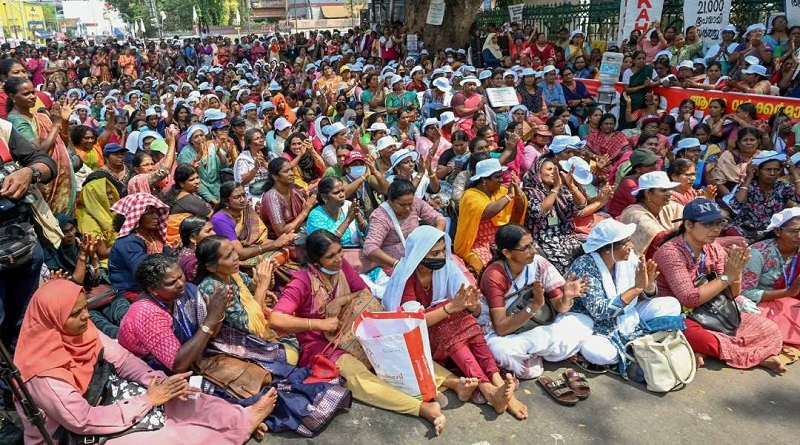 वेतन वृद्धि और सेवानिवृत्ति के बाद लाभ की मांग को लेकर केरल में विरोध प्रदर्शन कर रही आशा वर्करों के साथ आंगनवाड़ी कार्यकर्ताओं का एक वर्ग भी शामिल हो गया है।