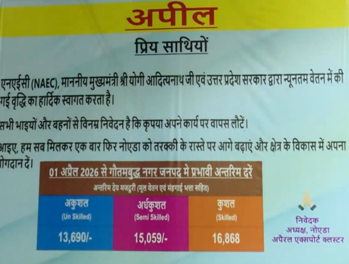 प्रदेश की बीजेपी सरकार का कहना है कि इससे नोएडा और ग़ाज़ियाबाद में वेतन में 21 फ़ीसदी तक की बढ़ोतरी हुई है। यह बढ़ोतरी एक अप्रैल 2026 से लागू होगी।