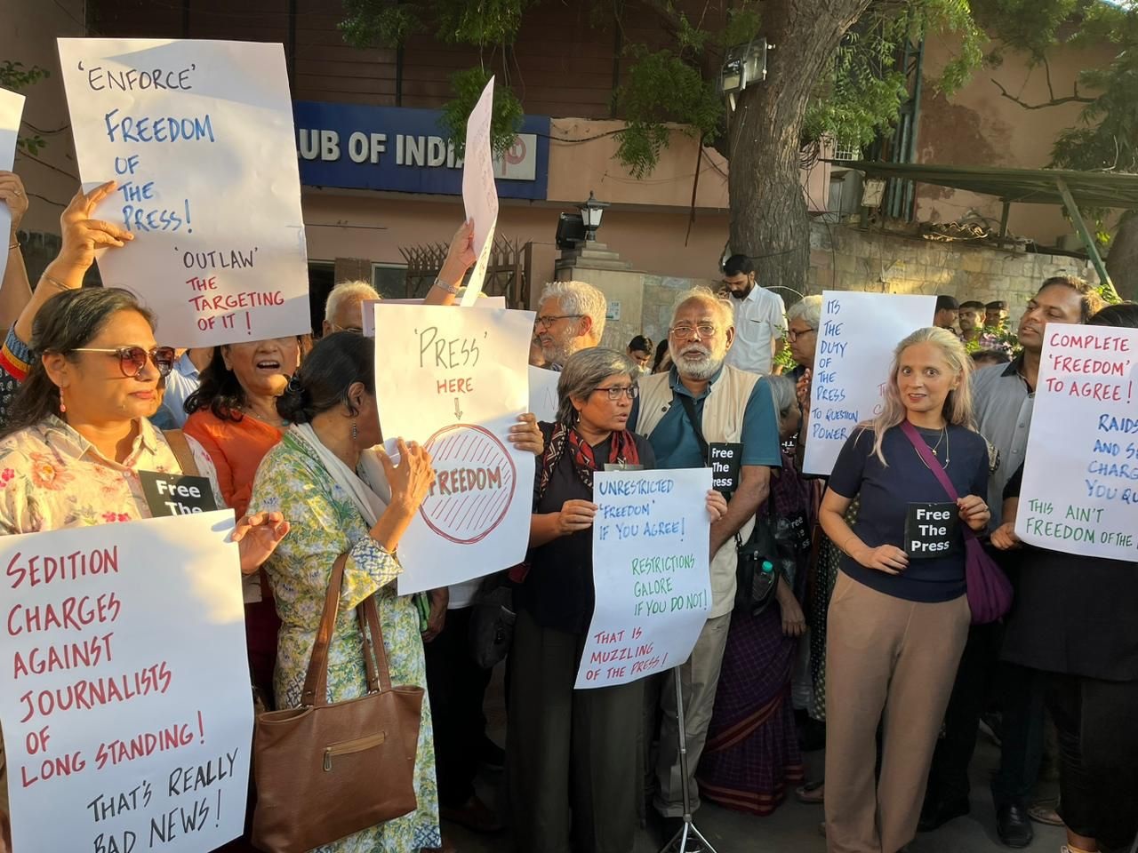 बुधवार को दिल्ली के प्रेस क्लब ऑफ़ इंडिया में बड़े पैमाने पर पत्रकारों का जुटान हुआ और जिस तरह से न्यूज़ क्लिक के एडिटन इन चीफ़ पर आतंकवादी गतिविधि के तहत यूएपीए लगाकर गिरफ़्तारी की गई और दर्जनों पत्रकारों के घरों पर मंगलवार को सुबह छह बजे छापेमारी की गई, उसके ख़िलाफ़ आक्रोश व्यक्त किया गया।