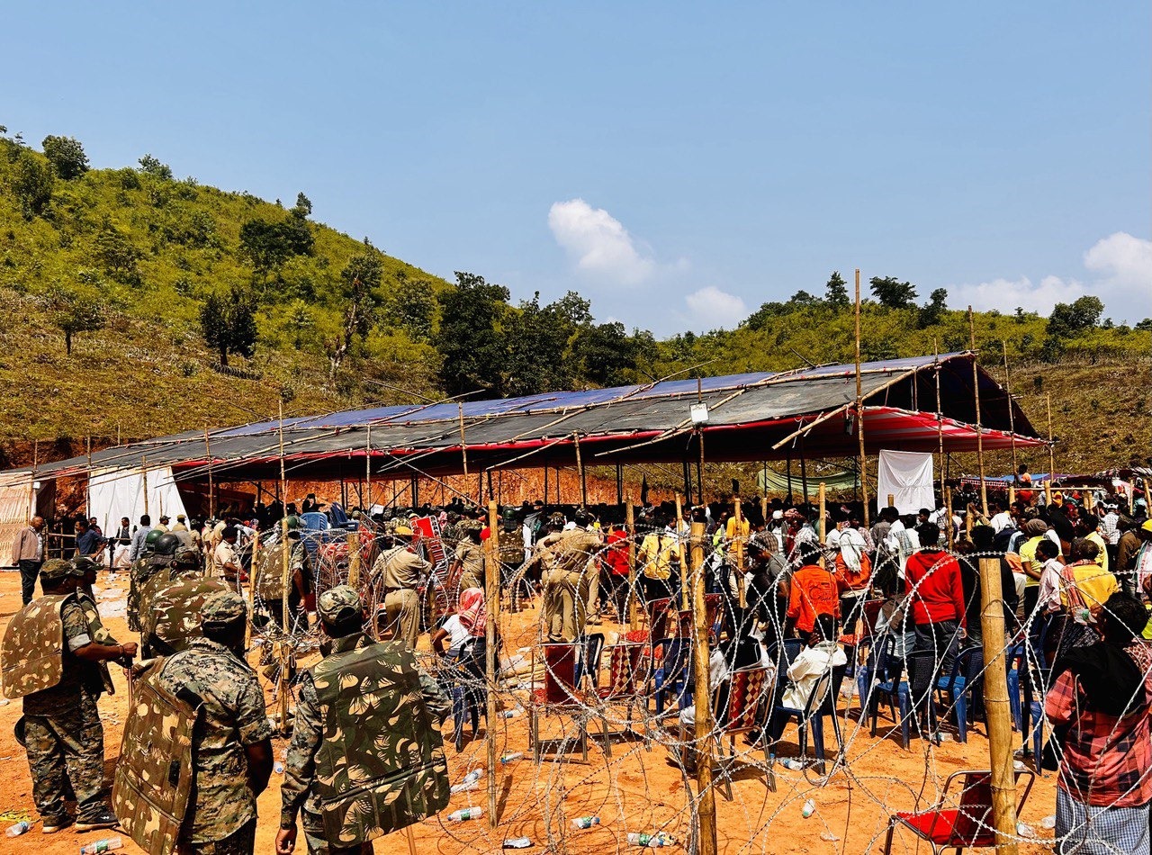 हर जगह भारी पुलिस और अर्धसैनिक बल मौजूद थे; कार्यक्रम स्थल की मुख्य सड़क पर पांच चेक पोस्ट थे और प्रत्येक पोस्ट पर लगभग 20 पुलिस और अर्धसैनिक बल के जवान थे। कार्यक्रम स्थल पर लगभग 600-700 पुलिस और अर्धसैनिक बल के जवान थे। एक पहाड़ी की चोटी पर स्थित, कार्यक्रम स्थल और कार्यक्रम स्थल तक जाने के रास्ते को कंटीले तारों से घेर दिया गया था। कंटीले तारों की बाड़ दूसरी पहाड़ी और पास के जंगलों तक लगाई गई थी।