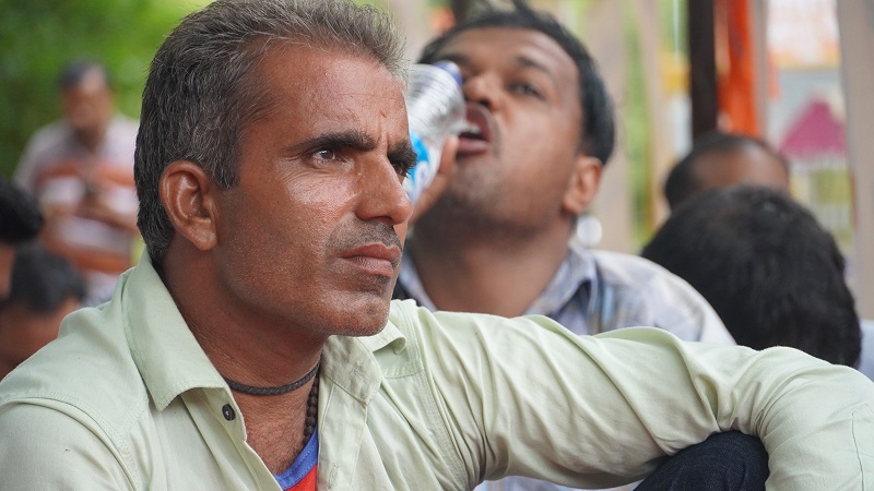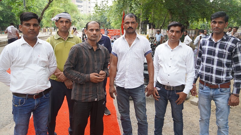 मिनी सचिवालय पर धरने में पहुंचे कई मज़दूर महीनों बाद एक दूसरे से मिल रहे थे। हालांकि उनका संघर्ष लगातार जारी है।