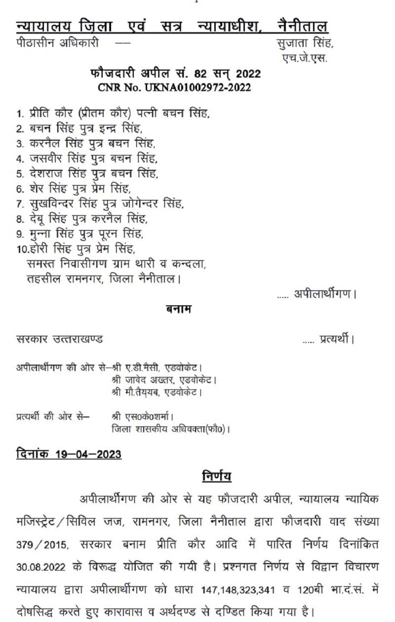 नैनीताल जिला सत्र न्यायधीश ने मुनीष कुमार व प्रभात ध्यानी के हमलावरों को निचली कोर्ट से सुनाई की सजा को बरकरार रखा।