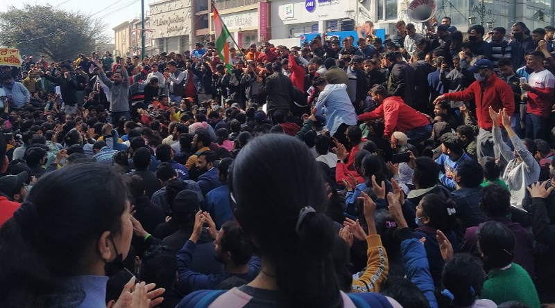 मौक़े पर भारी पुलिस बल तैनात है। पुलिस और युवाओं के बीच रह रह कर तीखी नोंक झोंक भी हो रही थी।