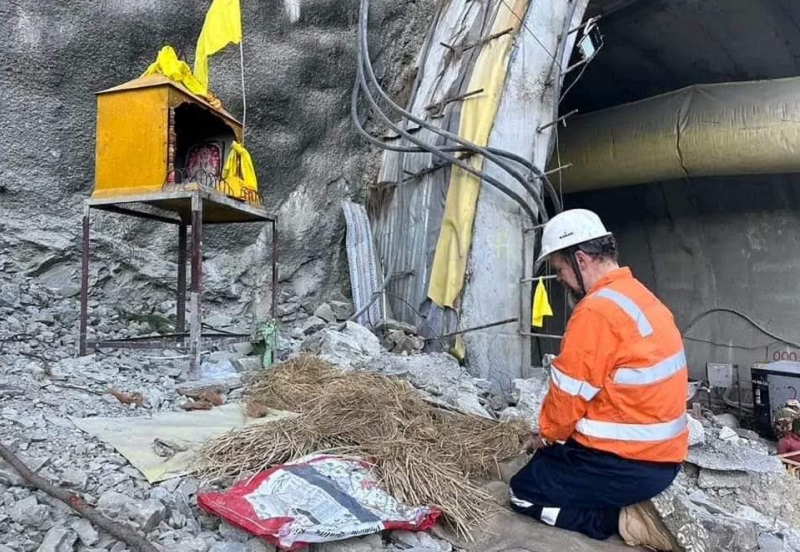 मज़दूरों और रेस्क्यू टीम के बीच जब 12 मीटर की दूरी बची थी तो उत्तराखंड की अति धार्मिक धामी सरकार ने सुरंग के बाहर एक अस्थाई मंदिर रखवा दिया और यह डिक्स महोदय वहां घुटने टेक कर बैठ गए और फोटो खिंचवाया। समझ नहीं आता कि एक इंटरनेशनल साइंटिस्ट या रेस्क्यू एक्सपर्ट इस अंधविश्वास के साथ मज़दूरों की कितनी मदद कर पाया होगा।
