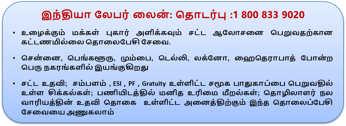 தகவல் : இந்தியா லேபர் லைனின் சென்னை குழு & வழக்கறிஞர் ஸ்ரீலா M