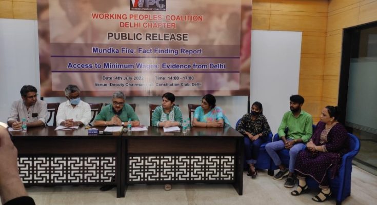 Delhi Chapter of the Working People’s Coalition (WPC) today released its two reports; one on the actual access to minimum wages by workers in Delhi, and another investigating the Mundka factory fire reporting on issues concerning the safety of the workers.